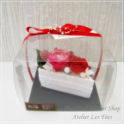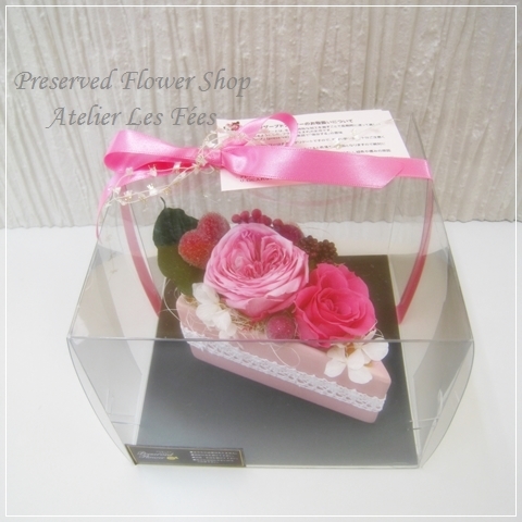キュートなプリザーブドフラワーのケーキアレンジです。